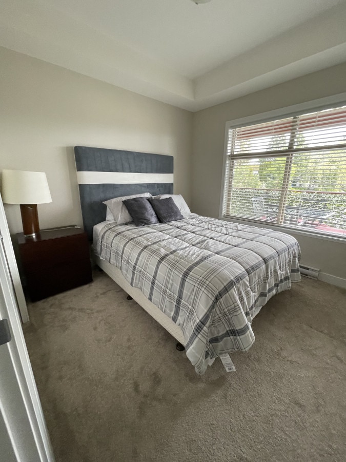 The second guest room has a comfortable Queen-sized bed, closet, and large windows, and is close to the second washroom. The second washroom features a stand-alone shower, vanity, laundry, and toilet.